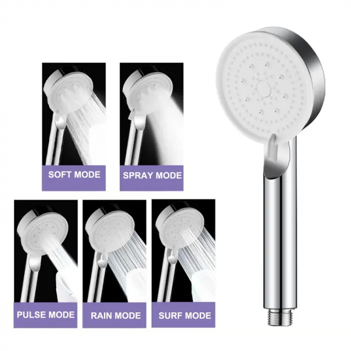 3. Funcionalidad de cinco modos: El cabezal de ducha tiene una función de cinco modos que le permite cambiar entre diferentes modos de agua. Esto le brinda un mayor control sobre su experiencia de ducha, haciéndola más cómoda.